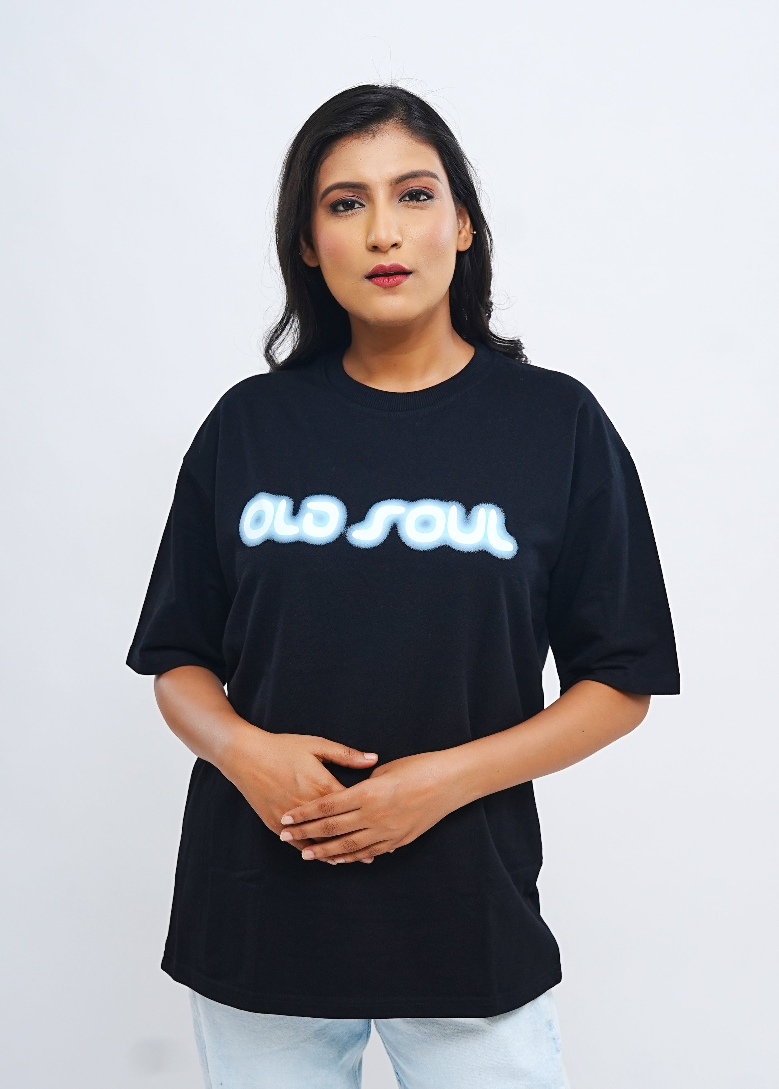 Old Soul Black Oversized Fit Yoga T-Shirt for Women